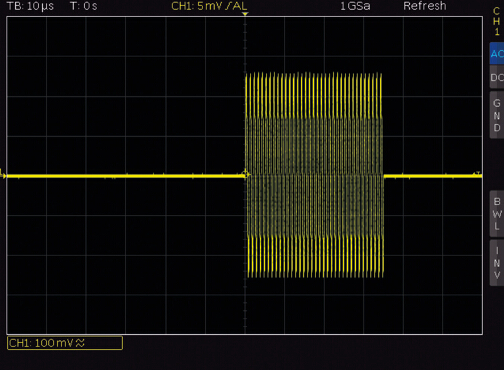 惠美HMO系列示波器与此不同:既然FFT以前存储的信号还有用,通过一个可调节的窗口宽度,以单次模式或停止模式捕获的这些信号部分,随后对它们进行分析就非常有用。图3为非周期信号曲线。
