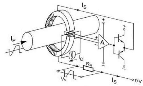 在此测量组合里的HZO50电流探头采用“霍尔效应”,由EdwinHall在第十九世纪末发明。HZO50采用闭环设计,霍尔芯片监测磁芯中的磁通,并且通过补偿线圈施加相反的磁场,以保持系统处于零状态;初级电流按比例与流过补偿线圈的电流进行补偿修正。
