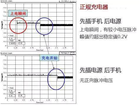 1、先用原装充电器测试,先插电源还是手机基本上不受什么影响(下面的波形图可以证明)。