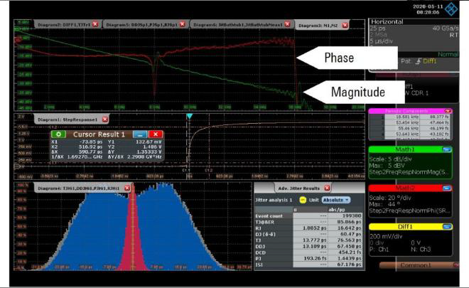 图3:被测设备和测试夹具的阶跃响应以及幅度和相位转换。